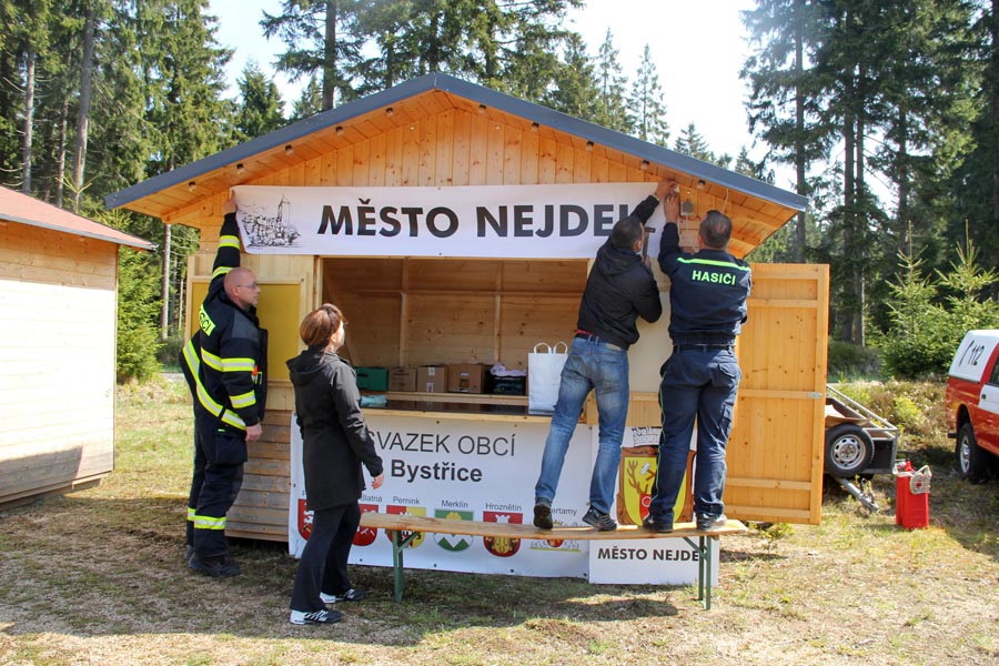 Následně bylo setkání cyklistů oficiálně zahájeno panem Hans-Uwe Haasem (Předseda německo-českého kulturního spolku Potok e. V. z obce Schneeberg) a panem Rudolfem Löfflerem (předseda Krušnohorského spolku Abertamy), kteří se svými spolky toto setkání cyklistů v rámci příhraničního projektu "Begegnung schafft Gemeinschaft" (Setkání tvoří komunitu) zorganizovali. Mimo to hosty pozdravil pan Lubomír Vítek (starosta města Nejdek) a pan Uwe Staab (starosta města Eibenstock). Jejich krátké projevy poukazovaly na význam "Karlovy stezky" i následného projektu "Karlova stezka II".