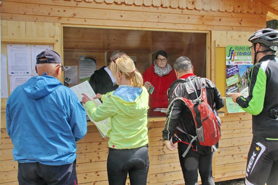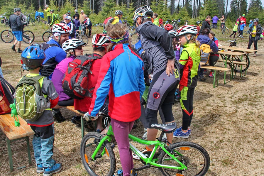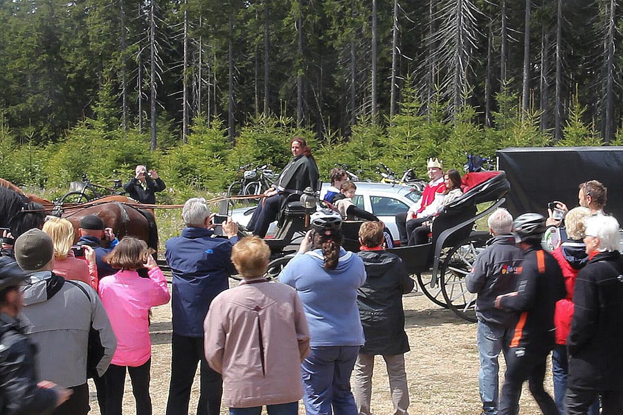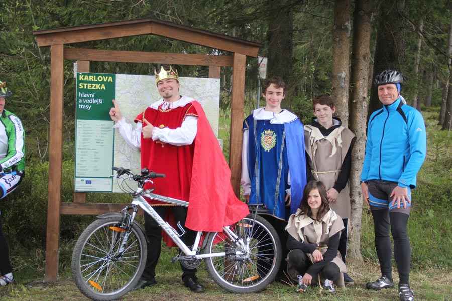 Za krásného slunečného počasí, příjemné nabídky rozmanitého občerstvení se následně vyvinulo družné společné setkání, při kterém nešlo jen o výlet na kole, ale také o navázání nových přátelství. Na informačních stáncích turistického informačního centra Eibenstock, informačního centra Nejdek, spolku běžců maratonu Eibenstock i spolku "Radost z cyklistiky" měli hosté možnost získat obsáhlé informace týkající se tématu cyklistika a dalších turistických nabídek v příhraničním regionu. Ohlášený čestný host se nakonec ukázal jako císař Karel IV., jehož narozeniny se 14. května 2016 oslavily po sedmi sté. Navzdory celostátním oslavám tohoto památného dne v České republice, si kdysi významný český král a římsko-německý císař (hraný jedním českým studentem) nenechal ujít příležitost přijet za všeobecné pozornosti s kočárem a doprovodem na setkání cyklistů. Jeho "poddaní" poděkovali jmenovci "Karlovy stezky" (království pro kolo) speciálně zhotoveným narozeninovým dortem. Na otázku, jak je možné, že po 700 letech vypadá stále tak mladě, odpověděla jeho výsost, že jej v kondici udržuje cyklistika v krásném prostředí Krušných hor, především na trase "Karlovy stezky". Kdo by s tím nesouhlasil?!