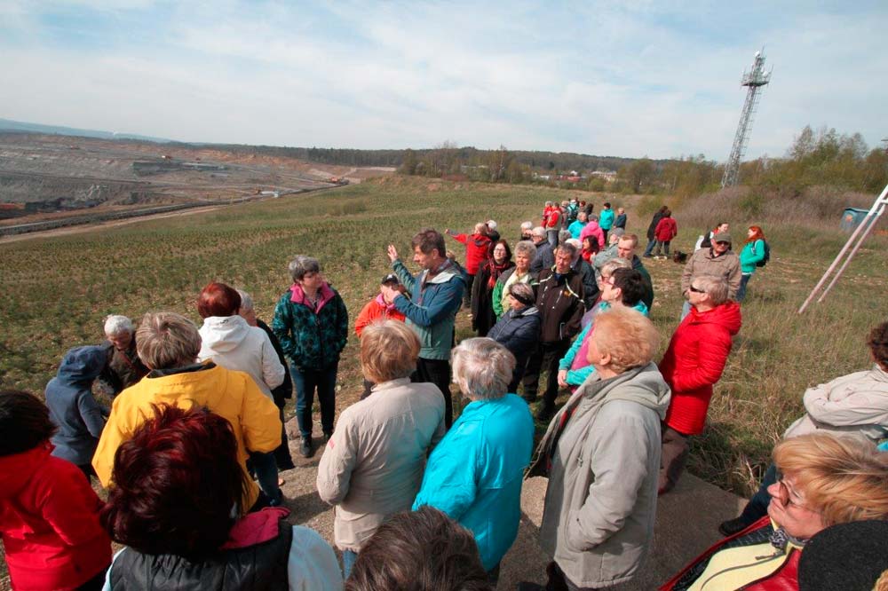 1. května v 10 hodin jsme se setkali ve vesnici Lomnice, která se nachází na jižní straně Krušných hor, se členy spolku Kulturverband Kraslice a členy Krušnohorského spolku Abertamy. Za dobrého počasí jsme podívali nejprve do povrchového dolu, který je stále v provozu a ve kterém se těží hnědé uhlí. Dr. Petr Rojík nám poskytl odborný výklad. Byli jsme ohromeni velikostí těžební jámy a mocností uhelné vrstvy.