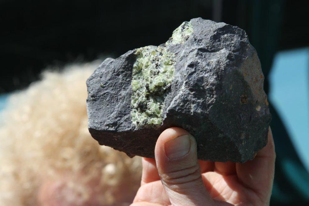 Naše cesta vedla dále k přírodní památce Dominova Skalka. Dr. Petr Rojík měl v autobusu část své sbírky minerálů, kterou nám během jízdy ukazoval. Humorným způsobem nám přednesl, odkud se vzaly horniny. Pak jsme procházeli po kamenech z hadce a prohlíželi jsme zvláštní rostliny.