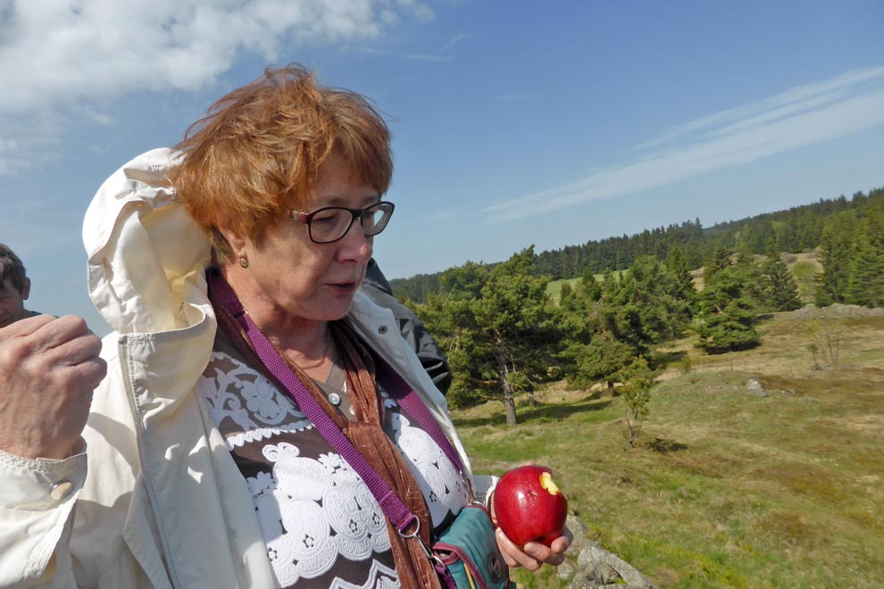 Jeli jsme po romantické silnici z údolí řeky Ohře až do nadmořské výšky 800 m na náhorní plošině Slavkovského lesa. Brzy byl dosažen náš první cíl. Ten byl u skupiny hadcových skalek se třemi kamennými kříži. Tématem našeho výletu byl hadec. Hadec je hornina z hlubin Země, která pronikla na povrch před miliony let. V Slavkovském lese se nachází zvláštní rostliny, které zde rostou jen díky speciálnímu minerálnímu složení povrchu. Každý účastník si našel něco pěkného. Jedni mají radost z pohledu na skály, jarního slunce nebo výhledů na náhorní plošinu. Jiní na břiše fotografovali zajímavé květiny a botanici hovořili o rostlinách.