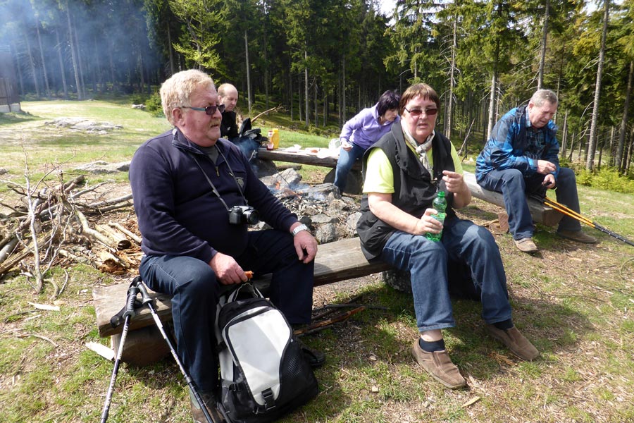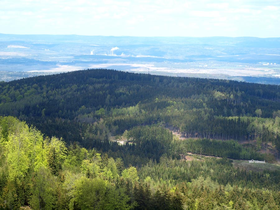 nás tentokrát zavedl do Slavkovského lesa, nedaleko Sokolova. Celá skupina se srazila v Kraslicích před kostelem. Nejdříve nám Péťa ukázal, jaké možnosti renaturace po ukončení těžby uhlí existují a jak dá krajina nově užívat. Túra začla tentokrát v Hruškové, vedla nás kolem pomníku uranové těžby ke zřícenině kostela sv. Mikuláše. Po malém odpočinku bažinami dál až na horu Krudum, kde stála rozhledna, která nám umožnila nádherný výhled do celého okolí Slavkovského lesa a nechala nás námahu a útrapy rychle zapomenout.