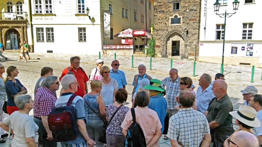 Také odpolední výlety byly opět velmi dobře organizovány. Byli jsme například v Plzni, tentokrát ne v pivovaru, ale na výstavě malíře Gustava Lindauera a na zámku v Chýši. Slunce to s námi myslelo příliš dobře, takže jsme si hojně využili i hotelový venkovní bazén. Každý večer jsme seděli útulně při sklence dobrého vína a dívali jsme se na film nebo jsme si zpívali české písničky - více nebo méně dobře. Vrcholení týdne bylo vystoupení skupiny Inspirio z Písku, která nám je již příliš dobře známá, patří každoročně k programu a je zárukou dobré zábavy a garantem dobré nálady.