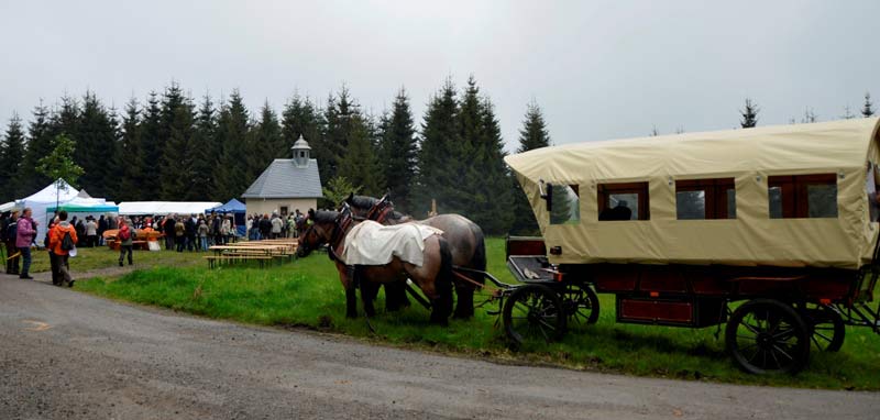 Mnoho přátel obou stran Krušných hor se sešlo 17. května 2014 na Mílově/Halbmeil, aby se zúčastnilo slavnostního vysvěcení obnovené kaple Sv. Jana Nepomuckého. S podporou partnerských obcí Breitenbrunn a Boží Dar, s penězi z EU-fondů a s pomocí mnoha různých lidí, Klaus Franke z breitenbrunského krušnohorského spolku si splnil sen. Zúčastnil se také nejmladší muž narozený v obci Halbmeil, kterému je 99 let. Do kamenné dlažby kaple je vložen vždy jeden kámen z každého původního domu zaniklé osady Halbemeile (v roce 1950 přejmenované na Rozhraní, ale známější pod názvem Mílov). Průběh německo-české hranice je zde podivuhodný. Od roku 1558 zasahuje špice saského území, podobná kachnímu zobáku, 1,5 km na jih a na těchto širokých loukách stojí dodnes čtyři obydlené domy, tvořící osadu Halbenmeile, která je součástí obce Breitenbrunn. Ale kdo se rozhlédne po českých loukách, najde jen základy a sklepy domů, které dříve patřily do osady Halbmeil, vysídlené po roce 1945 a v stržené v roce 1953, včetně kaple z roku 1830. Stavbou na základech stržené kaple Sv. Nepomuka vznikl nový poutní a turistický cíl, místo pro společné setkávání Němců a Čechů.
