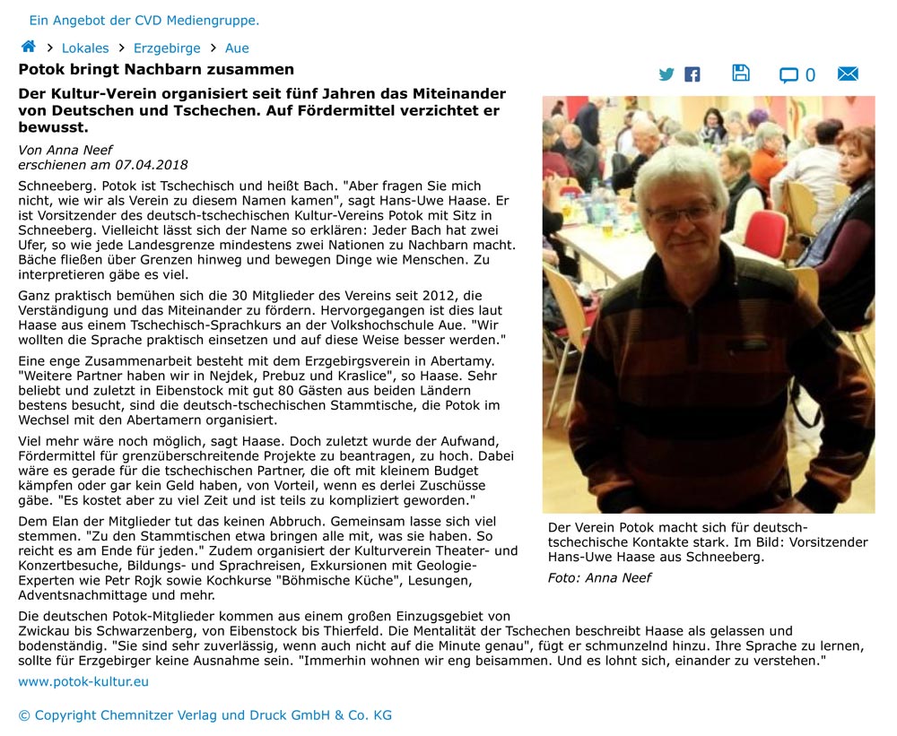 Článek v "Freie Presse" na 07.04.2018.