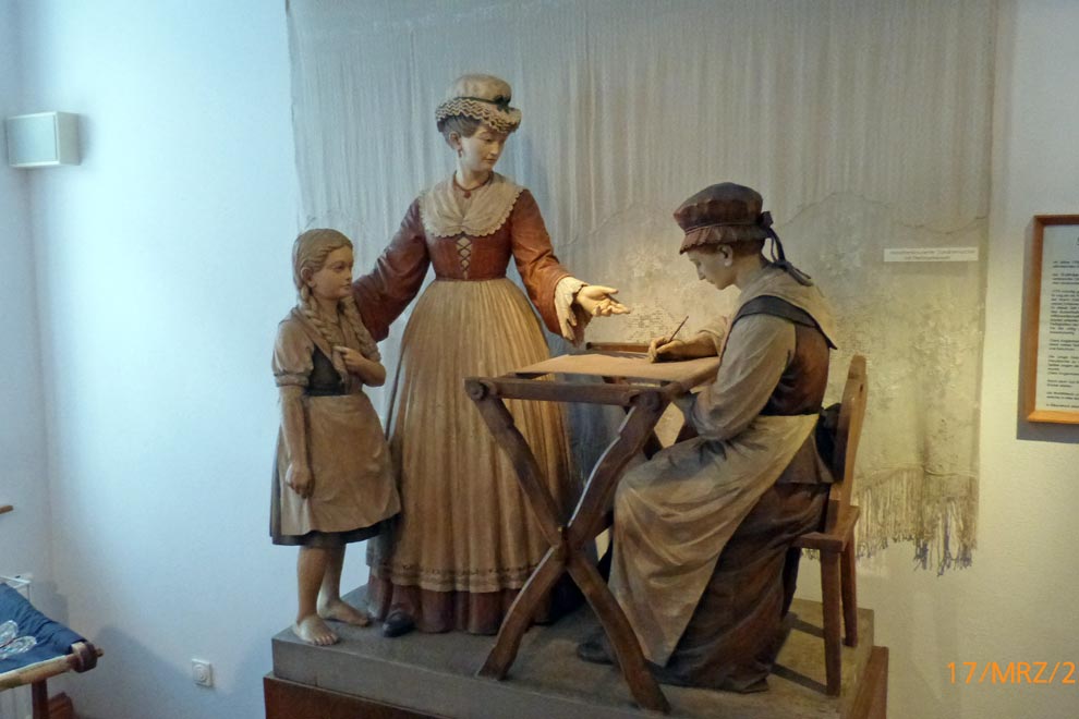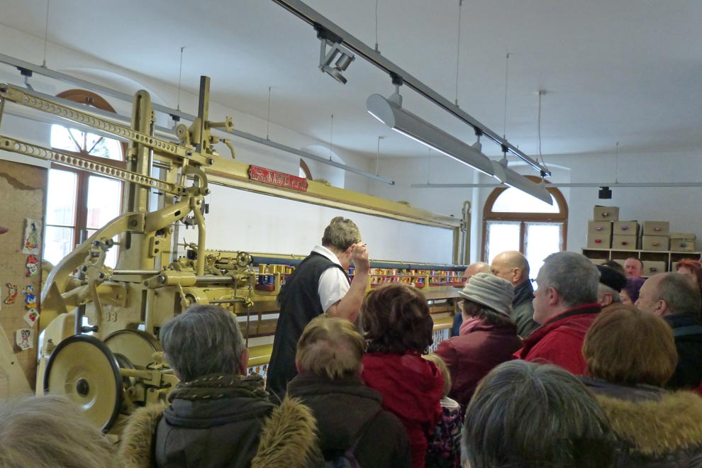 V muzeu vyšívání nám paní průvodkyně ukázala práci na historických vyšívacích strojích. Nemůžeme říci, co bylo nejzajímavější. Viděli jsme výšivky, vyšívané šaty a vlajky i mnoho starých dosud funkčních strojů tohoto řemesla se stoletou tradicí.