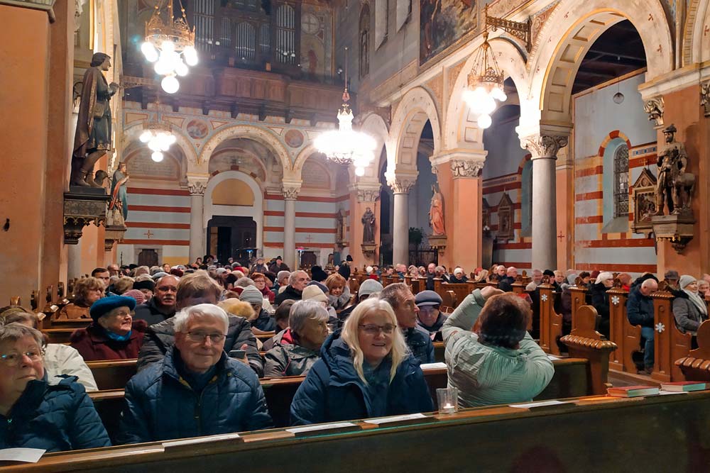 Die beiden Künstler wurden vom virtuosen Klavierspieler Jiři Hrubý begleitet, der es ebenfalls nicht leicht hatte, in der eiskalten Kirche zu spielen.