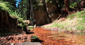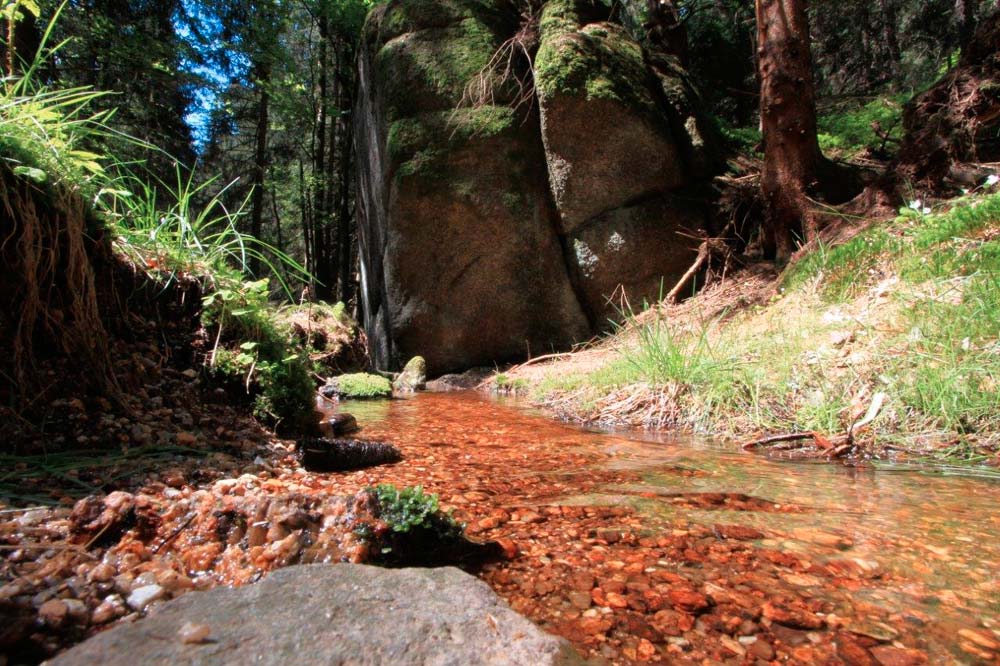 Im Tal zurück, führte uns die zweite Etappe ins herrliche Herrenbachtal, immer entlang eines künstlich angelegten Wassergrabens. Hier gab es noch die Gelegenheit, entlang des Stříbrný Potok zu einem kleinen, aber sehenswerten Wasserfall zu gehen.
