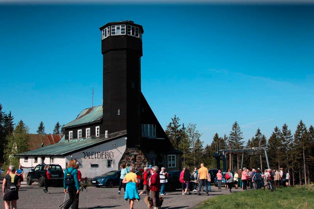 Nach der ausgiebigen Stärkung ging unsere Fahrt auf den Aschberg, wo viele Wanderfreunde den Ausblick vom Aussichtsturm über Bublava und Klingenthal bis hin zum Elstergebirge und dem Kaiserwald genossen.