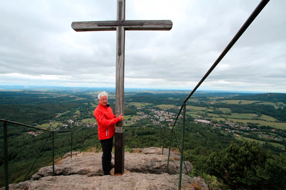 Wir stiegen von Ferdinandov und Hejnice zum 804m hohen Ořešník (Nussstein) auf. Dieser Aussichtsfelsen mit Gipfelkreuz ist zum Schluss über eine Eisenleiter zu erreichen. Wieder hatten wir Glück mit dem Wetter und konnten die herrliche Aussicht genießen. Nur der mäßig starke Wind machte den Aufenthalt etwas unangenehm. Über Stock und Stein stiegen wir wieder ab zum Stolbich-Wasserfall und gelangten steil absteigend hinunter ins Tal. Die Abschiedsmahlzeit im Gasthaus "U Cimpla" musste trotz Vorbestellung leider ausfallen, weil wir vor geschlossener Tür standen. So kehrte jeder auf eigenen Wegen nach Hause zurück.