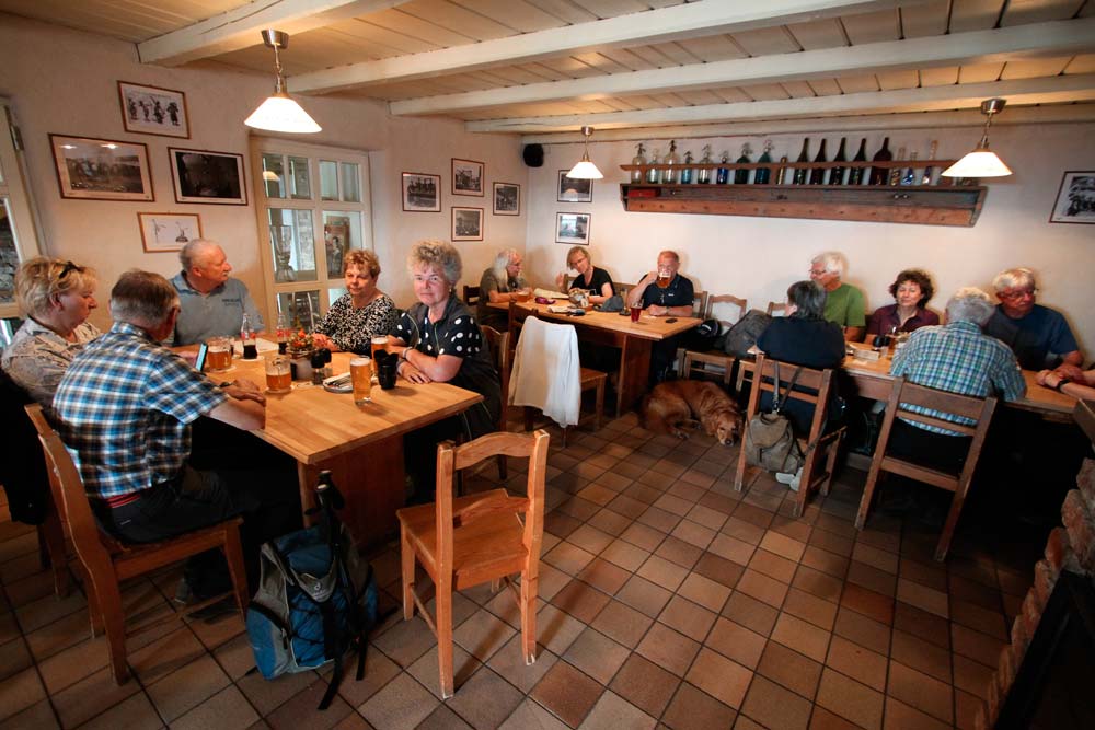 Diesmal wanderten wir mit einem kleinen ungeplanten Umweg nach Příchovice, einem Ortsteil von Kořenov. Nach dem Mittagessen war die Besichtigung der Kuriositätensammlung des Jára Cimrman mit Stöpsel im Teller oder einem Loch im Löffel eine willkommene Unterhaltung. Nach kurzem Regen führte der Weg über den Aussichtsturm Štěpánka zurück zum Hotel.