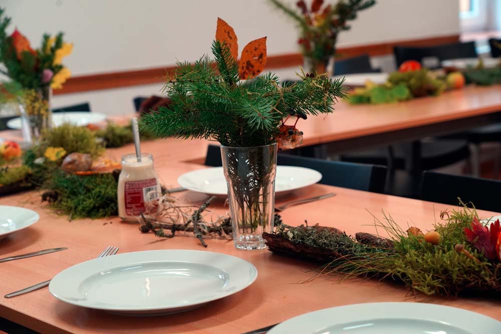 Wir trafen uns gegen 10.00 Uhr zu einem gemeinsammen Brunch. Danach gings es in die Natur, um Dekorationsmaterial für die Tische zu sammeln. Der teilnehmende Fleischer und einige Helfer begannen in der Zwischenzeit bereits mit der Vorbreitung der einzelnen Gänge des Essens. Nach der Rückkehr und der Dekoration der Tische begann auch schon das Essen. Dies zog sich bis in den Abend hin. Es war sehr umfangreich und lecker. Zum Ausklang des Abends waren noch lustige Spiele und Wettbewerbe organisiert.