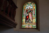 Potom jsme přešli do kostela sv. Aegida. Kostel byl s pomocí nezávislého spolku vybudován ze zříceniny do Muzea vitráží. V budově jsou vystaveny kopie historických kostelních oken ze všech epoch dějin umění v Evropě. Strop kostela vyrobený ze skla byl obzvláště působivý.
