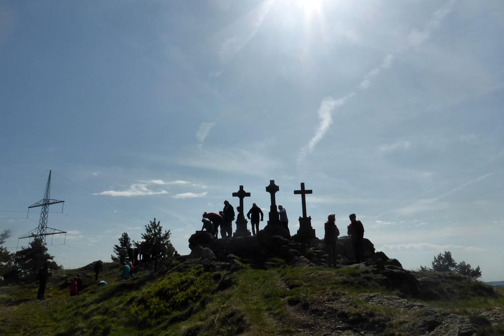 Jeli jsme po romantické silnici z údolí řeky Ohře až do nadmořské výšky 800 m na náhorní plošině Slavkovského lesa. Brzy byl dosažen náš první cíl. Ten byl u skupiny hadcových skalek se třemi kamennými kříži. Tématem našeho výletu byl hadec. Hadec je hornina z hlubin Země, která pronikla na povrch před miliony let. V Slavkovském lese se nachází zvláštní rostliny, které zde rostou jen díky speciálnímu minerálnímu složení povrchu. Každý účastník si našel něco pěkného. Jedni mají radost z pohledu na skály, jarního slunce nebo výhledů na náhorní plošinu. Jiní na břiše fotografovali zajímavé květiny a botanici hovořili o rostlinách.