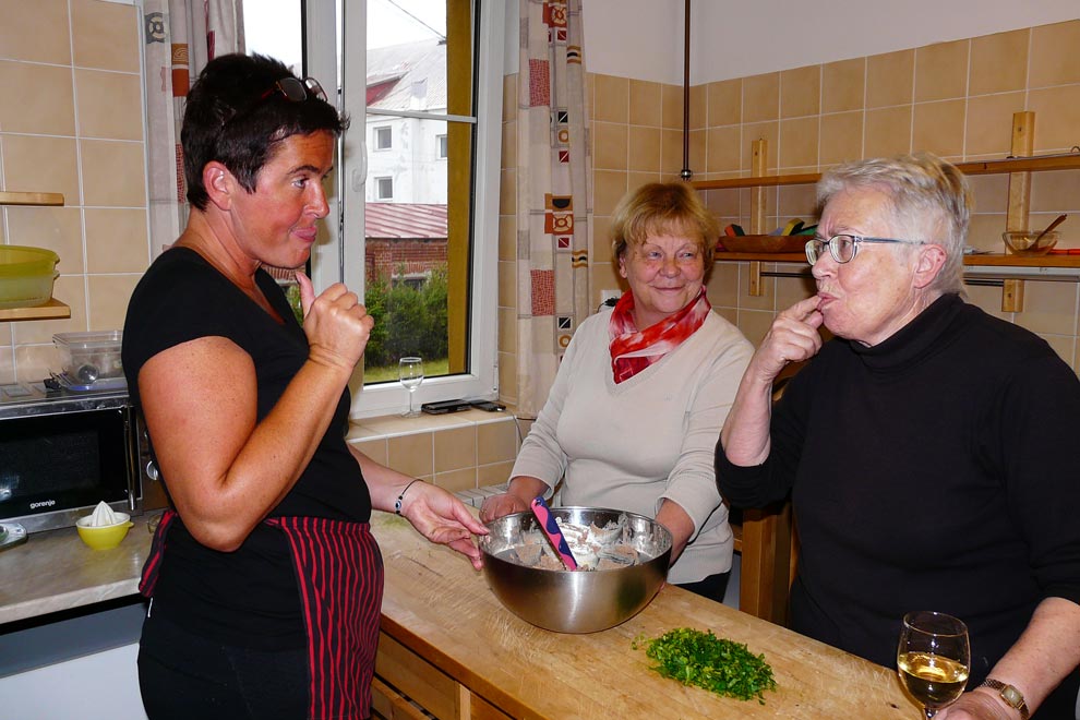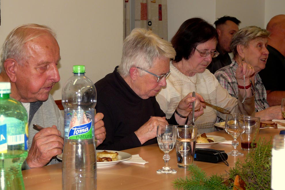 I naše spolky tuto tradici udržují. A proto jsme se i my setkali 9. listopadu na faře v Perninku, abychom společně uvařili a snědli Svatomartinskou husu a další dobroty. Celý den se vařilo pod vedením Gity Kořínkové. Užili jsme si samozřejmě také dobré Svatomartinské víno. Jako obvykle to byla perfektní Česko - německá spolupráce. Zapojili se všichni – mladí, i ti starší.