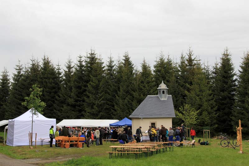 Mnoho přátel obou stran Krušných hor se sešlo 17. května 2014 na Mílově/Halbmeil, aby se zúčastnilo slavnostního vysvěcení obnovené kaple Sv. Jana Nepomuckého. S podporou partnerských obcí Breitenbrunn a Boží Dar, s penězi z EU-fondů a s pomocí mnoha různých lidí, Klaus Franke z breitenbrunského krušnohorského spolku si splnil sen. Zúčastnil se také nejmladší muž narozený v obci Halbmeil, kterému je 99 let. Do kamenné dlažby kaple je vložen vždy jeden kámen z každého původního domu zaniklé osady Halbemeile (v roce 1950 přejmenované na Rozhraní, ale známější pod názvem Mílov). Průběh německo-české hranice je zde podivuhodný. Od roku 1558 zasahuje špice saského území, podobná kachnímu zobáku, 1,5 km na jih a na těchto širokých loukách stojí dodnes čtyři obydlené domy, tvořící osadu Halbenmeile, která je součástí obce Breitenbrunn. Ale kdo se rozhlédne po českých loukách, najde jen základy a sklepy domů, které dříve patřily do osady Halbmeil, vysídlené po roce 1945 a v stržené v roce 1953, včetně kaple z roku 1830. Stavbou na základech stržené kaple Sv. Nepomuka vznikl nový poutní a turistický cíl, místo pro společné setkávání Němců a Čechů.
