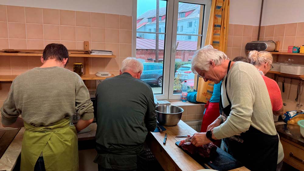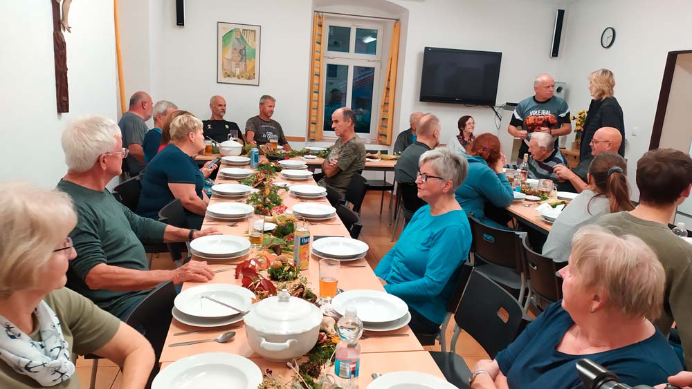 Am Wochenende 10./11.10.2025 trafen wir uns mit dem Erzgebirgsverein Abertamy in Pernink zum gemeinsamen Kochen. Nach einem reichlichen Frühstück und einer gemeinsamen Wanderung begann das gemeinsame Kochen.