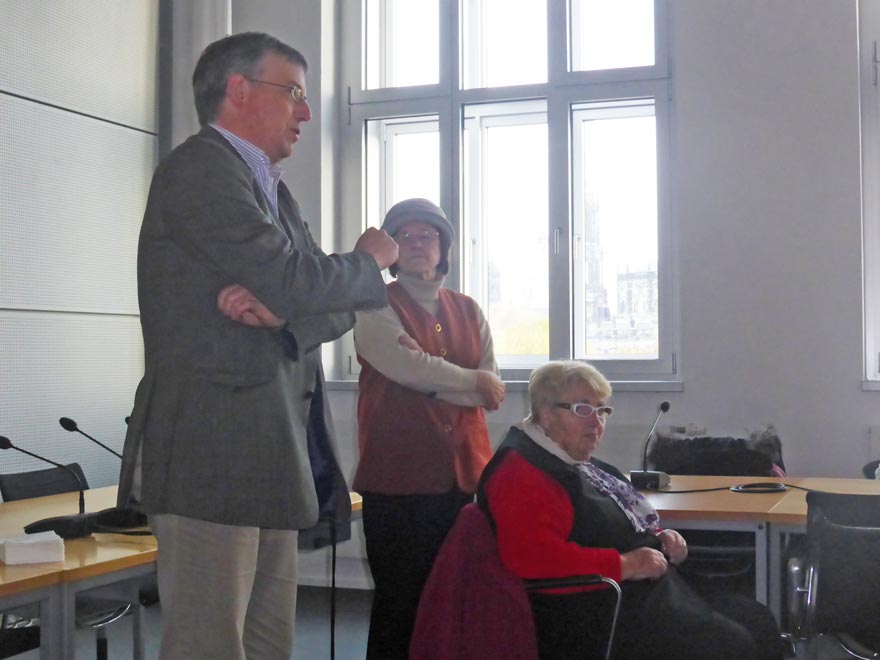 Im Sächsischen Landesparlament empfing uns dann ein Fraktionsmitarbeiter von Bündnis 90 / Die Grünen mit einem willkommenen kleinen Imbiss. Wir konnten ein paar unserer Fragen los werden, zuschauen, wie im Plenum zum Punkt "Landeskompensationsverordnung …" diskutiert wurde und sogar mit dem Fraktionschef Volkmar Zschocke anschließend diskutieren.