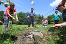 Als nächstes fand unsere Mittagspause statt. Diese führten wir traditionell als Picknick am Lagerfeuer auf dem Sportplatz durch. Nach der Pause wanderten wir zur nahe gelegen Mineralquelle (bekannt als Krondorfer Sauerquelle/ Korunní kyselka). Wir verkosteten das Wasser und füllten unsere Flaschen damit.