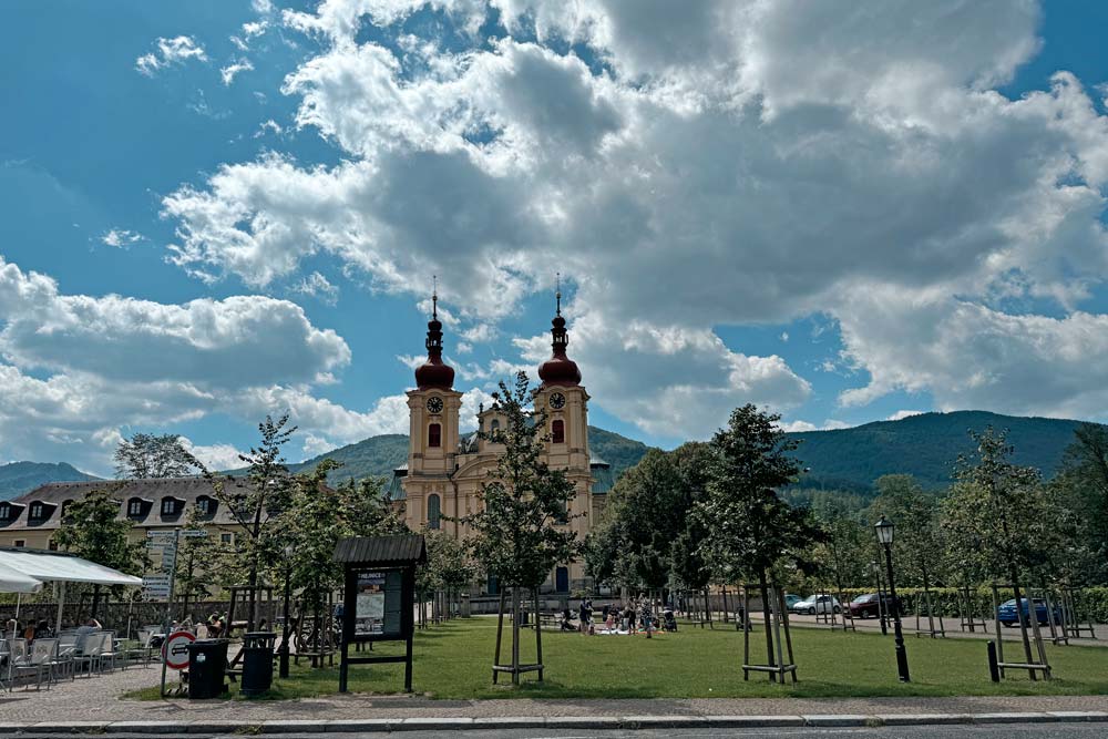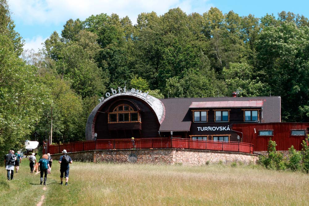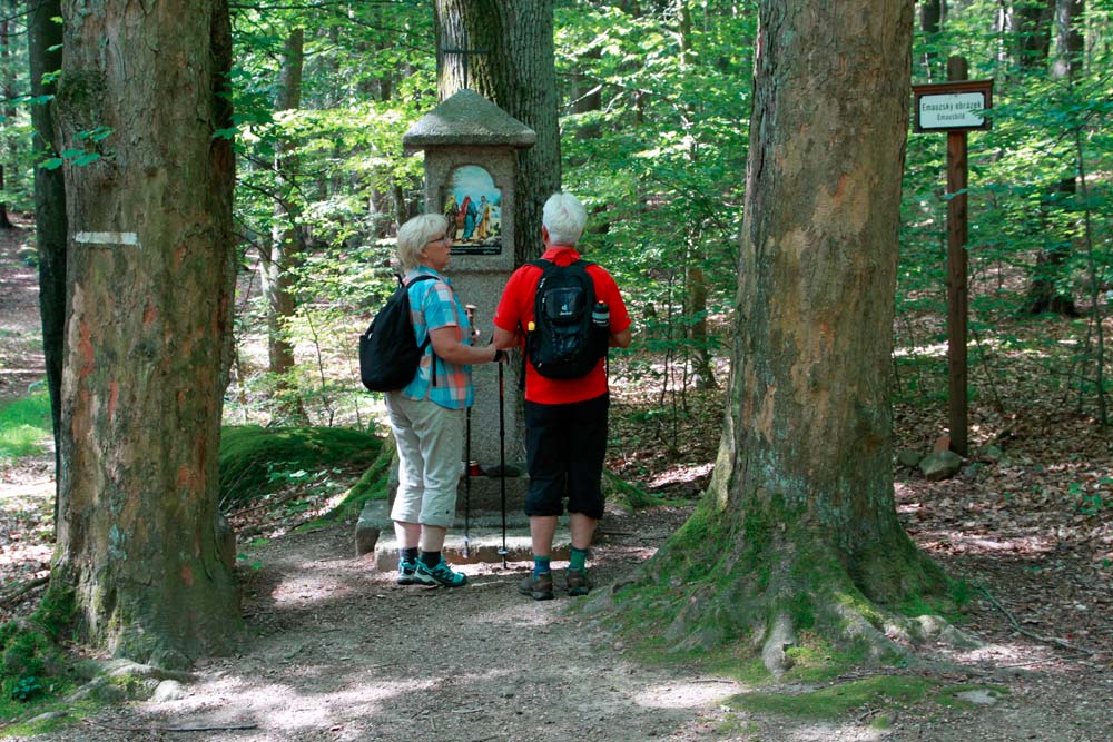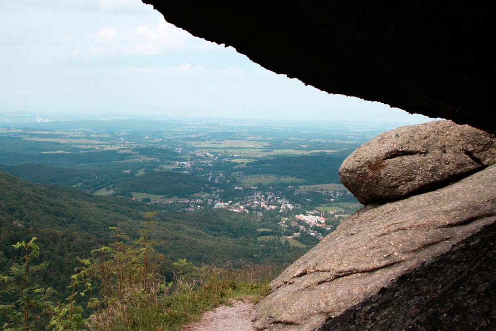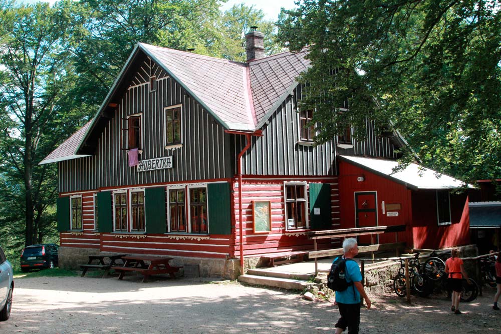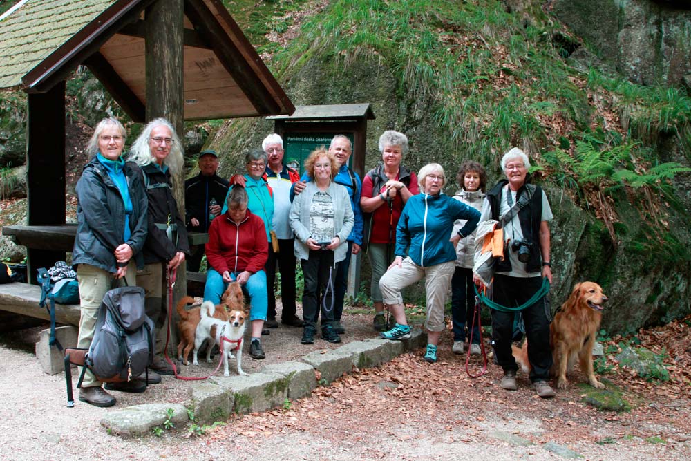 Der harte Kanten – vorbei am Campingplatz Hejnice folgten wir einem sanft ansteigenden Weg ins Schwarzwassertal bis zum Wasserfall. Von dort stiegen die "Sportlichen" einen immer steiler werdenden Weg hinauf zu den Friedländer Zinnen (Frýdlantské cimbuří – 918 m). Wer es geschafft hatte, wurde mit einer traumhaften Aussicht bis ins Zittauer Gebirge belohnt. Einmal oben, führte uns ein romantischer Gebirgspfad einige Kilometer durch Wald und Stein. Über eine ebene Forststraße und einen steil absteigenden steinigen Weg, vorbei an einem idyllischen Waldsee und dem Wasserfall gelangten wir wieder ins Tal nach Hejnice und stärkten uns im Dělnický dům für die letzten Meter zur Pension.