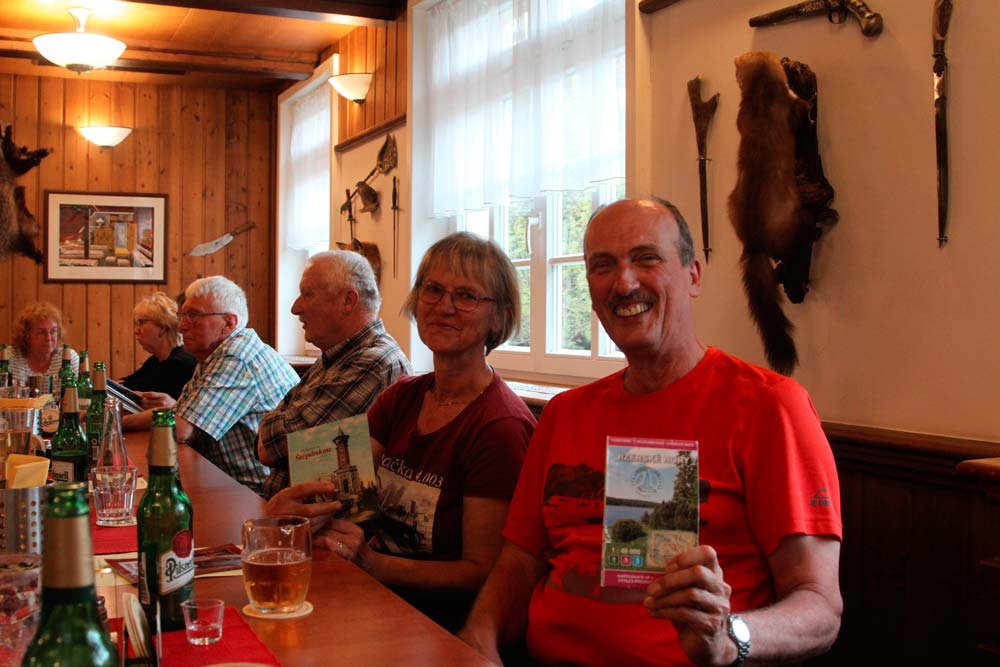 Diesmal wanderten wir mit einem kleinen ungeplanten Umweg nach Příchovice, einem Ortsteil von Kořenov. Nach dem Mittagessen war die Besichtigung der Kuriositätensammlung des Jára Cimrman mit Stöpsel im Teller oder einem Loch im Löffel eine willkommene Unterhaltung. Nach kurzem Regen führte der Weg über den Aussichtsturm Štěpánka zurück zum Hotel.