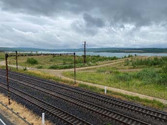 Weil diese Region auch geologische Besonderheiten aufweist, fuhren wir als Auto-Kolonne an einen Bahndamm. Dort suchten und fanden wir natürlich auch die „Naturkeramik“. Das sind Gesteine, die durch brennende Kohleflöze gebildet werden. Die Geologen nennen diese Varität "Porzellanit" oder Erdbrand. Petr schaufelte diese Steine massenweise vom Bahndamm und wir verstauten die besten Stücke in den Autos. Da unser Schuhwerk nicht für solche Aktionen und vor allem nicht für dieses nasse Wetter ausgelegt war, gab es einige Lachsalven.
