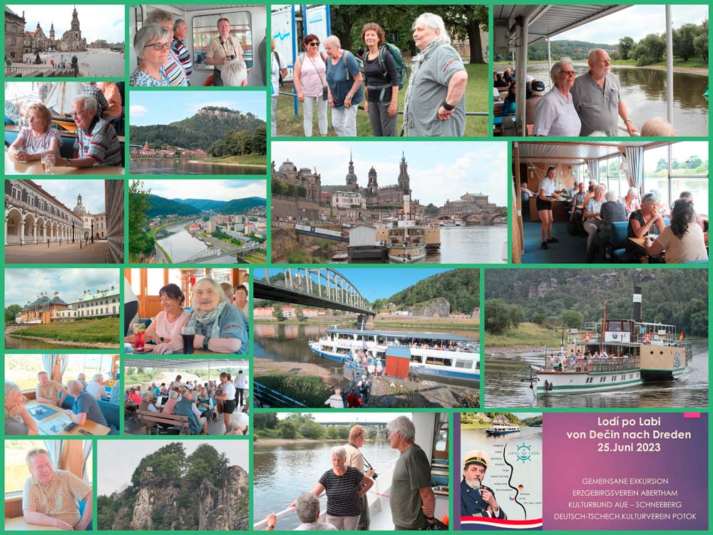 Der Deutsch-Tschechische Kulturverein Potok e.V. organisierte gemeinsam mit dem Erzgebirgsverein Abertamy und dem Kulturbund Aue-Schwarzenberg eine Exkursion über Děčín nach Dresden. Das Interesse daran war derart groß, dass wir den Doppelstockbus von Lang-Reisen nutzen mussten. Nach einer kurzen Stadtrundfahrt in Děčín bestiegen wir das Passagierschiff, auf dem wir bereits erwartet wurden.