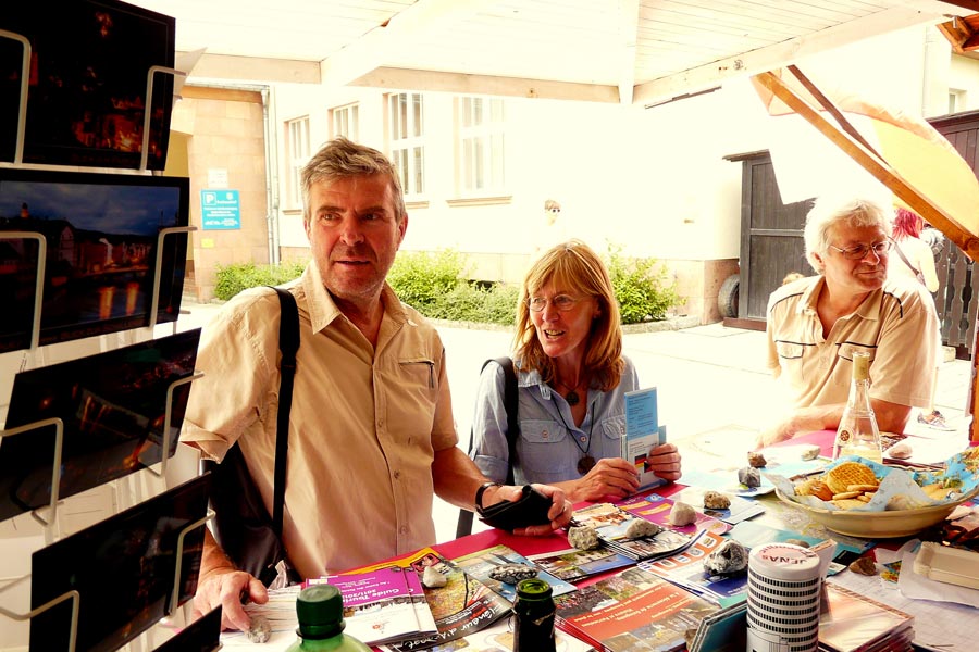 So konnten wir am Infostand mit vielen Gästen ins Gespräch kommen und uns über das Wiedersehen mit guten alten Bekannten freuen. Der sehr aufwändig eingerichtete Infostand des Städtepartnerschaftskomitees bot neben regionalspezifischen Getränken und Essereien auch viel Informationsmaterial zu den Partnerstädten und zur Arbeit unseres Vereins. Wir danken Frau Francoise Oulmann und ihren Helfern für die angenehme Zusammenarbeit.