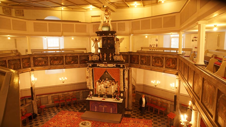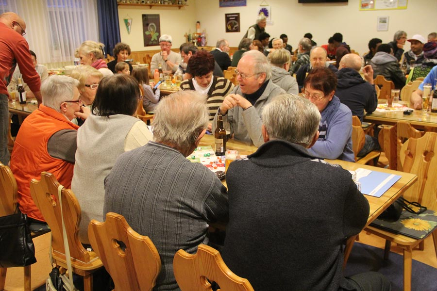 Zur Einstimmung des Abends besuchten alle die sehenswerte Kirche "Zur Ehre Gottes" in Bernsbach, wo sie den Ausführungen des Pfarrers und dem Gesang des Bernsbacher Männerchores lauschten. Beim anschließenden geselligen Abend wurde in einer angenehmen Atmosphäre über das Projektvorhaben diskutiert, über erzgebirgische Musik gesprochen, gesungen und getanzt. Wer wollte, konnte auch eine Kugel schieben - auf der Kegelbahn des SV Saxonia Bernsbach.