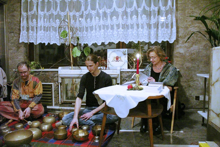 Anschließend feierten wir weiter mit unseren Gastgebern. Die Poetin Klára Hůrková und Begleiter Karel Homolka mit zwei weiteren Künstlern bezauberten mit gelesenen Versen und Variationen auf ihren Klangschalen. Wieder einmal köstlich bewirtet von unseren Gastgeberinnen und Gastgebern und bei schönen Gesprächen klang dieser Stammtisch aus.