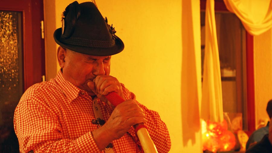 Eine freudige Überraschung war die anschließende Übergabe des Erlöses einer Spendenaktion mehrerer Erzgebirgszweigvereine und Privatpersonen für unseren Freund "Pepa", der ihm auf dem Weg in ein normales Leben helfen soll. Zum Abschluss begeisterte uns Herr Pöhler mit der Präsentation seines selbst hergestellten Alphorns. Mit diesen Alphornklänge gingen unsere gemeinsamen unterhaltsamen Stunden in Pöhla zu Ende.