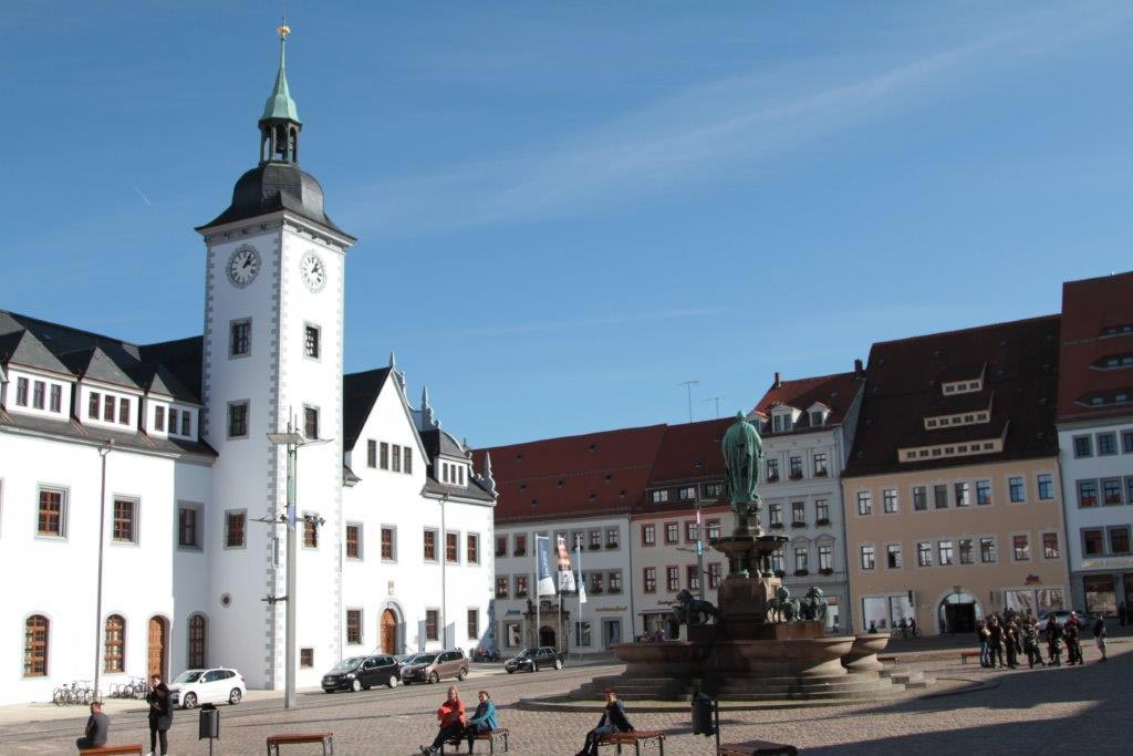 Am 12. Oktober 2019 starteten 60 Teilnehmer aus Abertham/Abertamy, Schwarzenberg, Aue und Lößnitz zu einer Exkursion nach Freiberg. Gegen 9.30 Uhr kamen wir vor dem Schloss Freudenstein bei herrlichem Sonnenschein an.