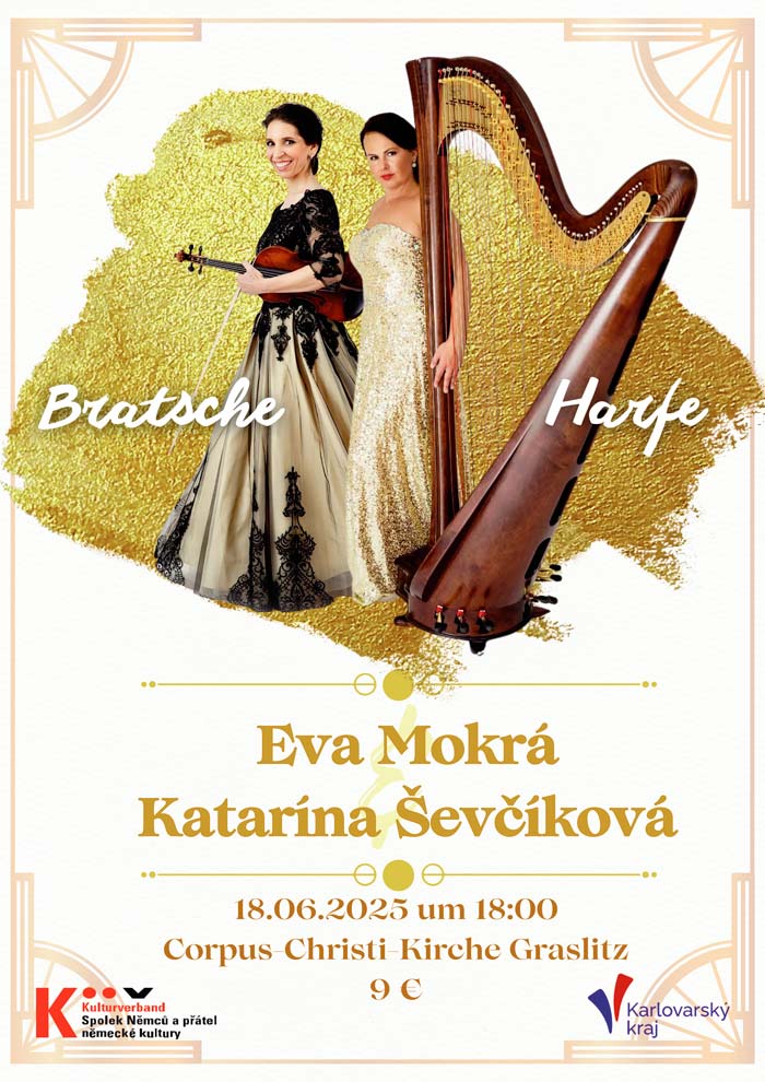 Das Programm des Konzerts der Bratschistin Eva Mokrá und der Harfenistin Katarína Ševčíková bietet klassische Musik von der Renaissance über das Barock bis zur Musik des 21. Jahrhunderts, Filmmelodien und Balladen.