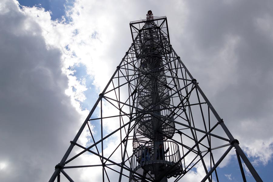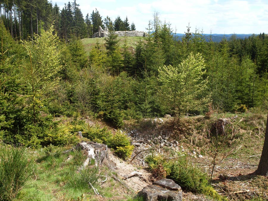 Unsere Wanderung führte uns dann von Hrušková aus über die Ruine Kostela sv. Mikuláše zum Gipfel des 866m hohen Krudum. Dort genossen wir den beeindruckenden Rundblick von der Besucherplattform des Funkturmes. Schnell waren die Strapazen des Aufstieges vergessen. Unterwegs erhielten wir von Petr sachkundige Informatinen zur Geologie und Natur dieser Region.